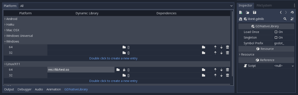 ### Create GDNativeLibrary Resource